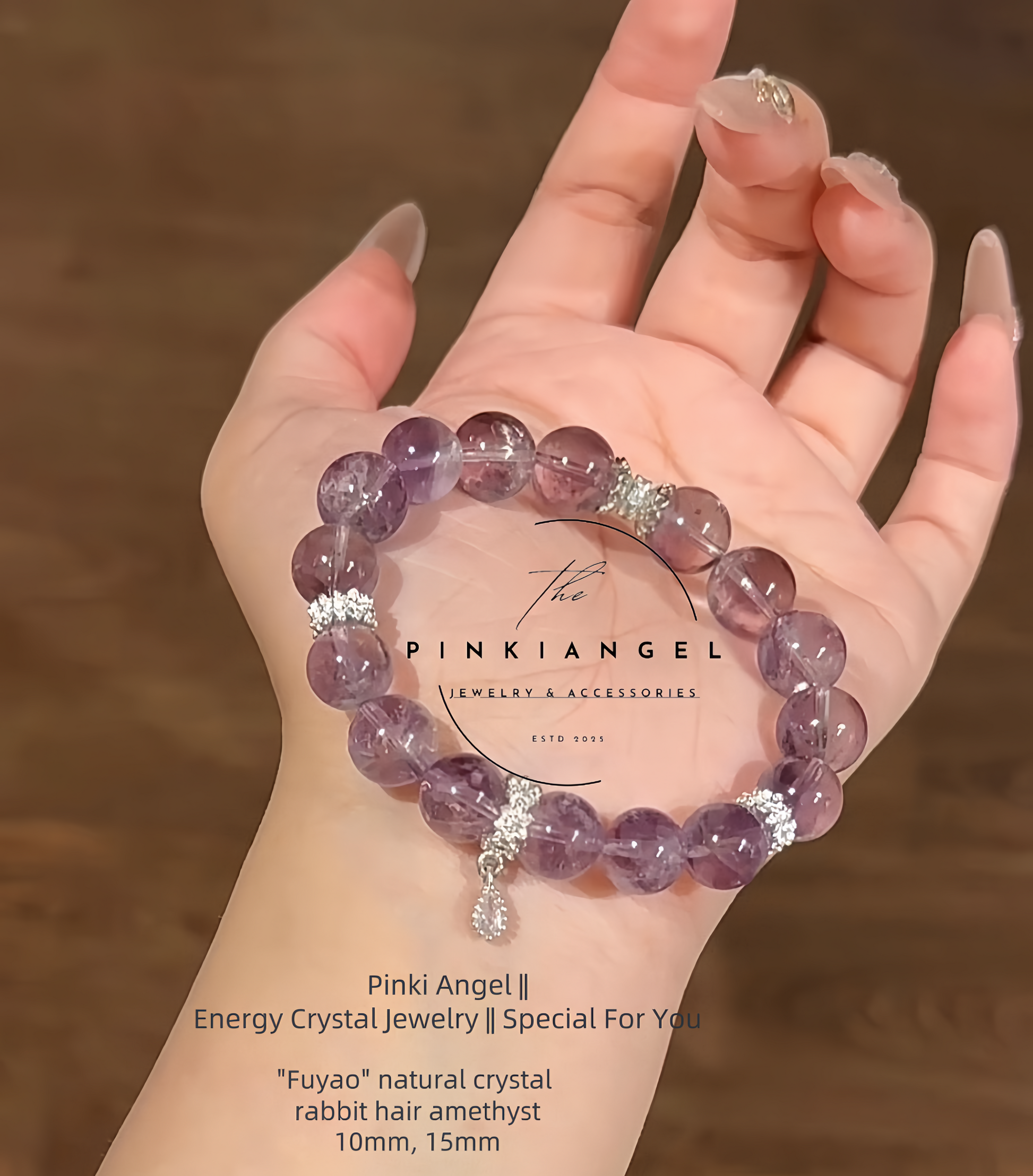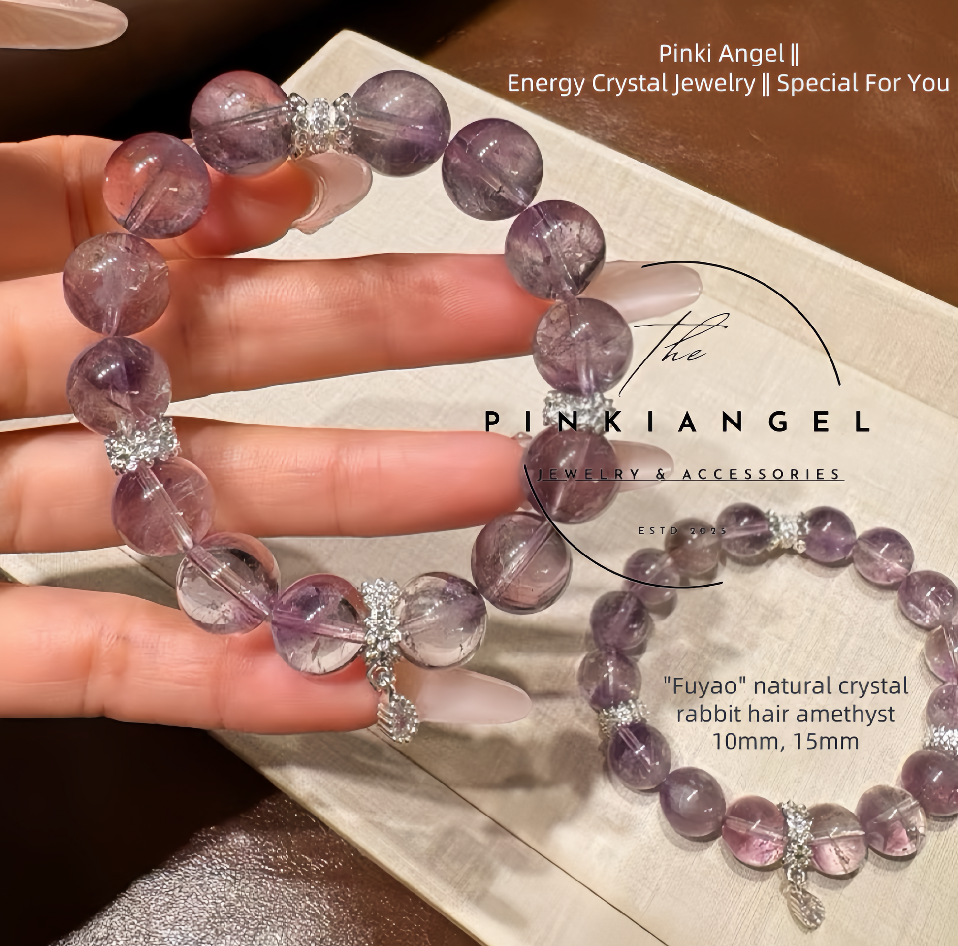 This Rutilated Amethyst bracelet carries a gentle, soothing energy that calms the mind and eases stress. Known as a stone of inner peace and spiritual healing, it helps restore balance while surrounding you with a sense of comfort and protection.